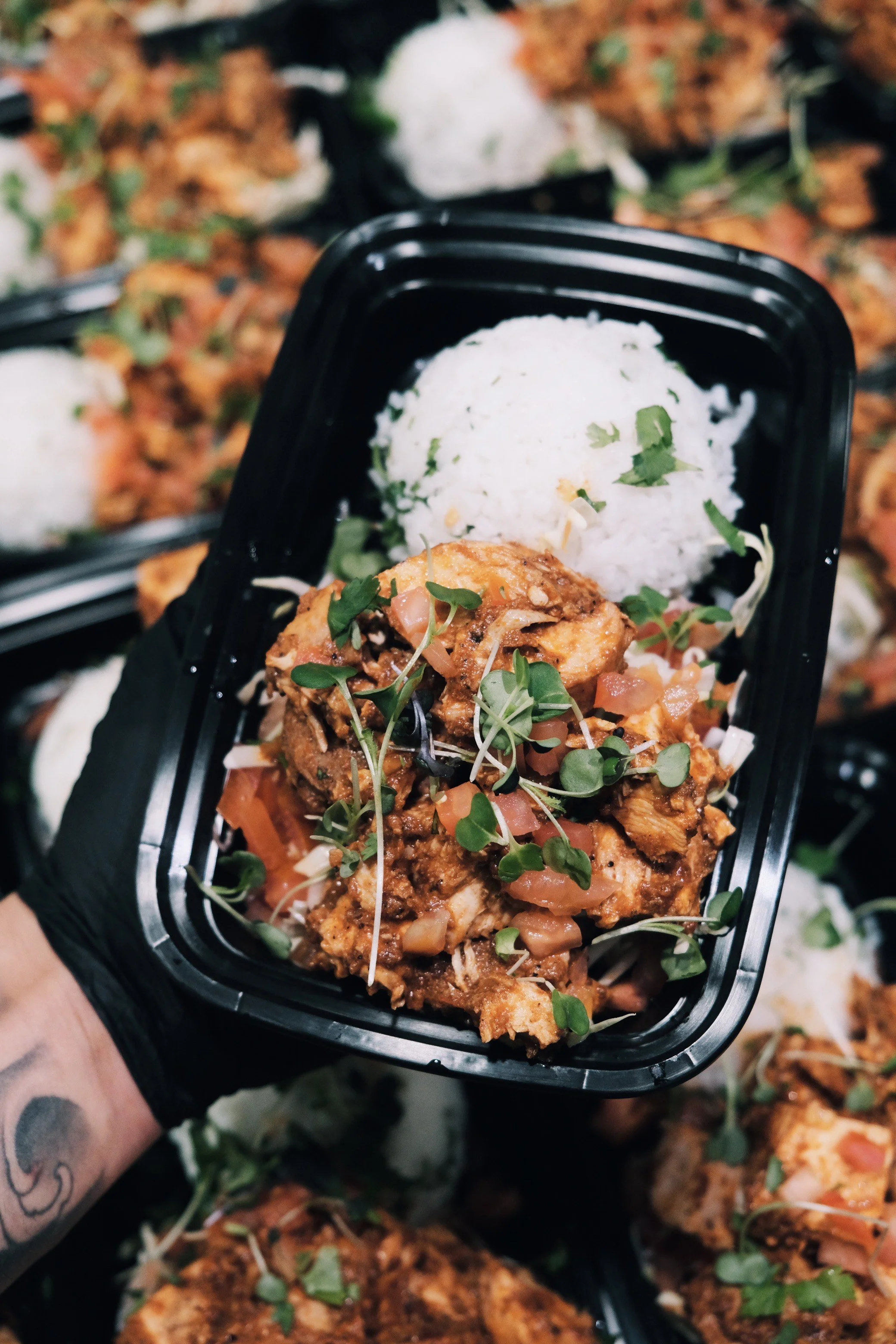 Ingredients: Halal chicken, yellow onion, tomato, adobo, garlic, kosher salt, pepper, cotija cheese, cilantro, line juice, cumin, oregano, micro herb