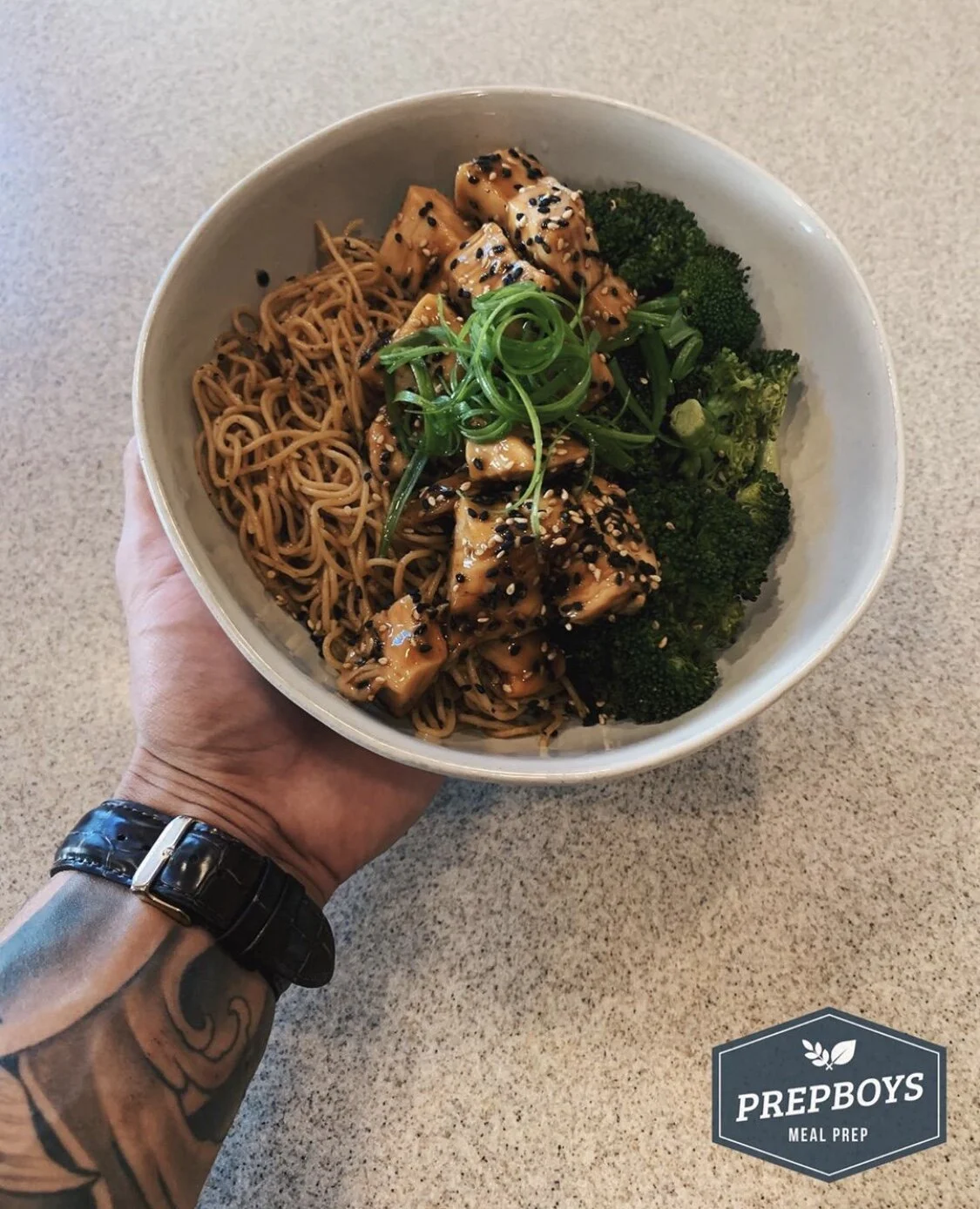 Ingredients: black label chicken, garlic, mivrk, roasted sesame seeds, teriyaki sauce, olive oil, salt, pepper, green onion, white rice, broccoli, carrot